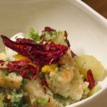 Puffed fresh pasta, sweet sheep’s ricotta, blood orange veils, fried sage, and vincotto reduction
