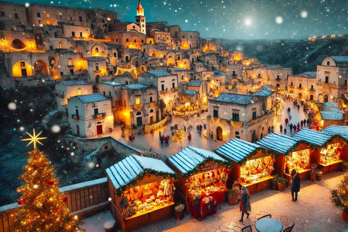 Passeggiando tra le casette in legno decorate a festa, ci si immerge in un’atmosfera calda e autentica, con il profilo dei Sassi a fare da cornice. Non mancano spettacoli per bambini, la Baita di Babbo Natale, artisti di strada e la suggestiva Calata Acrobatica dei Babbi Natale, uno degli appuntamenti più attesi.